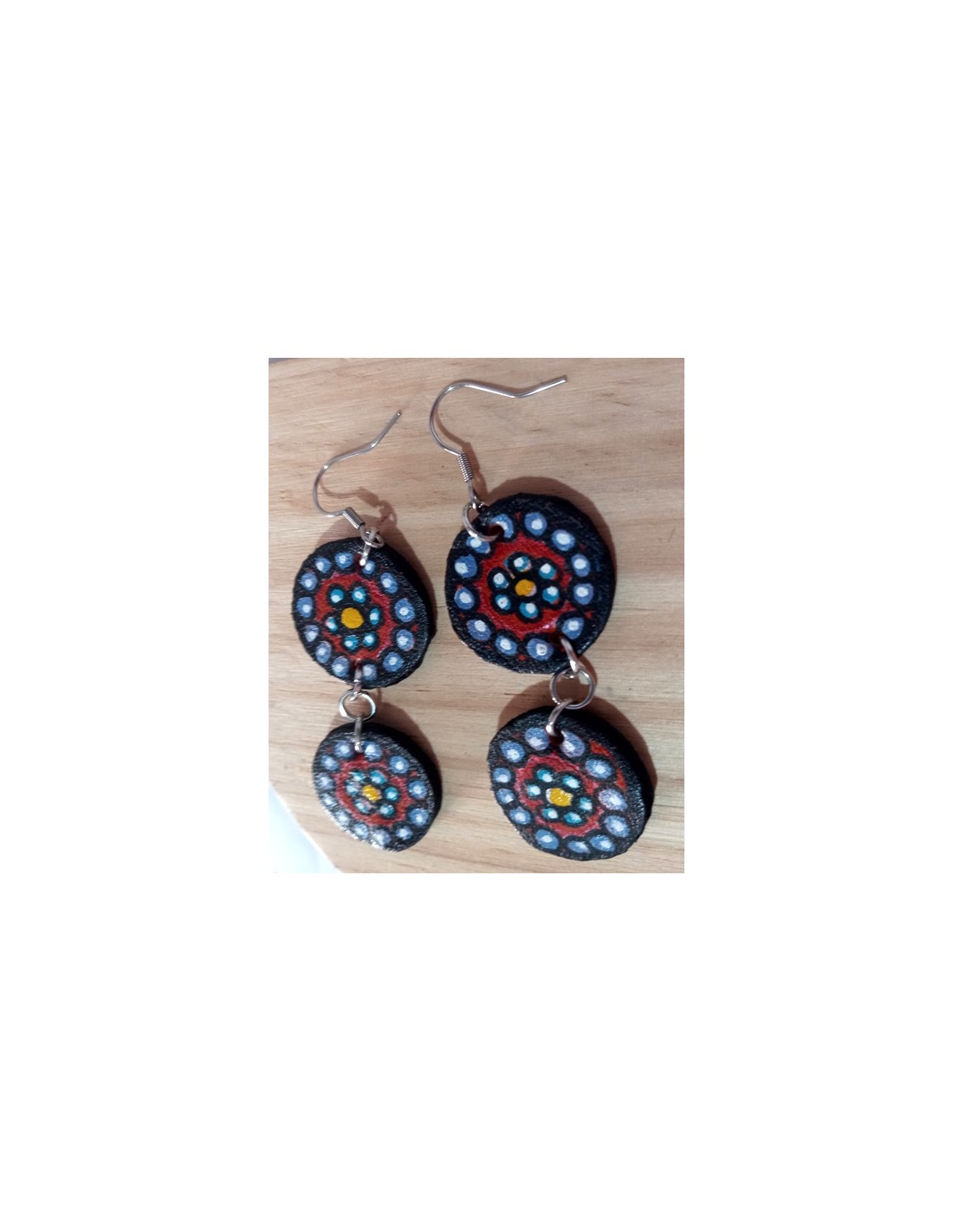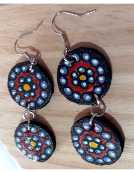 Orecchini in pelle, fatti e dipinti a mano.